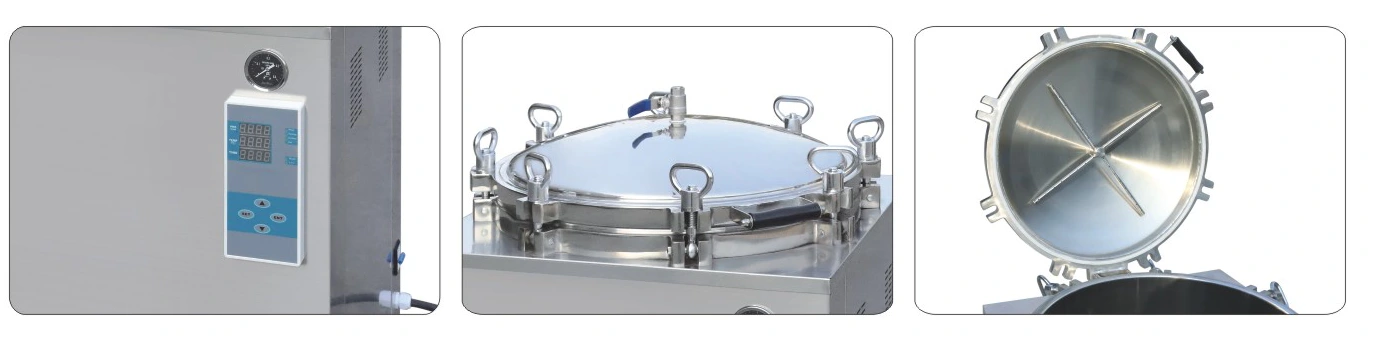 Protitlakový autokláv je druh stredne veľkého sterilizačného zariadenia riadeného mikropočítačom, ktorý priamo plní vodu do sterilizačnej komory na elektrický ohrev, aby sa vytvorila vysokotlaková para podľa potreby sterilizačného cyklu, potom jednotka pokračuje v sterilizácii na výrobky, teplota vody by sa rýchlo ochladila za 3 minúty pomocou vonkajšej pripojenej jednotky stlačeného vzduchu po dokončení cyklu a teplota výrobkov sa po ukončení cyklu môže znížiť na 30℃. na výber sú dve možnosti prevádzky: dezinfekcia varom, ktorej teplota sterilizácie je nižšia alebo rovná 100 ℃. Jednotka je vybavená ochranou proti preťaženiu a funkciou bzučiaka po sterilizácii, jednoduchá a pohodlná obsluha, bezpečná a spoľahlivá. Je použiteľná na dezinfekciu a sterilizáciu obalov potravín, náradia, nástrojov a iných predmetov. Je vhodná najmä na testovanie sterility v potravinárskych výskumných inštitúciách.